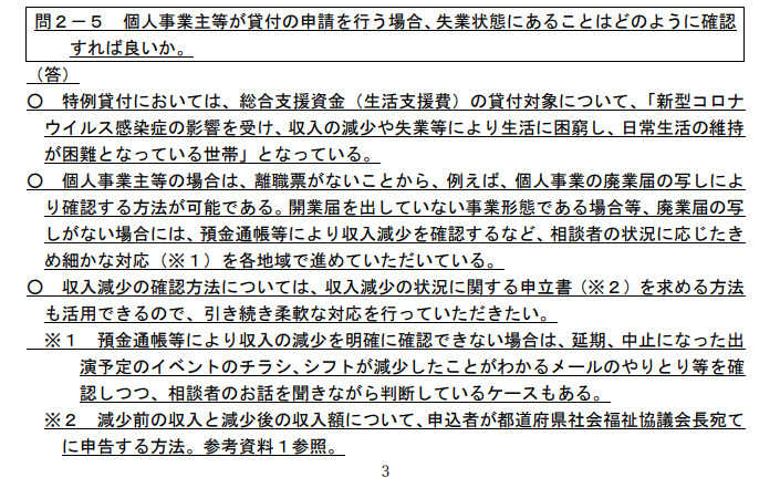 この点についてはただコロナの影響による急な休業・失業があるからか、厚生労働省から各都道府県に柔軟に対応するようにと以下の資料では述べられています。