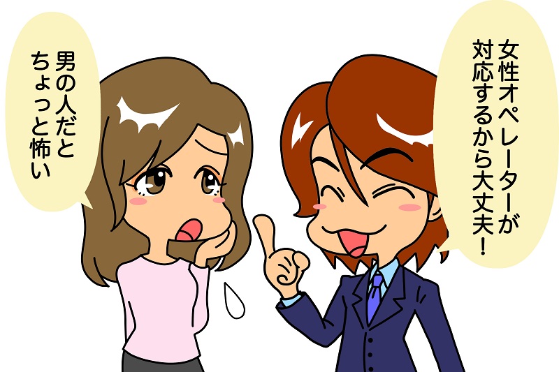 コールセンターの対応は全て女性が担当し、基本的に男性が電話に対応することはありません。
