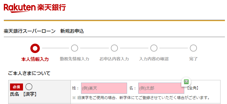 上記は新規申し込みのPC画面ですが、続けて氏名や住所、居住形態などの本人情報入力のほか、勤務先情報や申込内容を入力します。